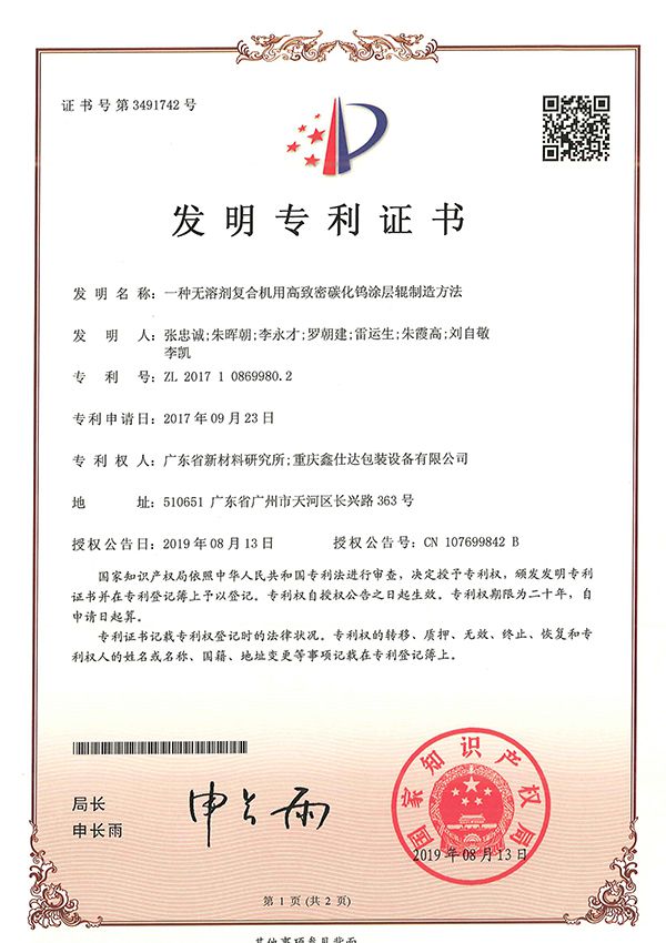 Procédé de fabrication de rouleaux de machine à laminer sans solvant avec revêtement en carbure de tungstène haute densité